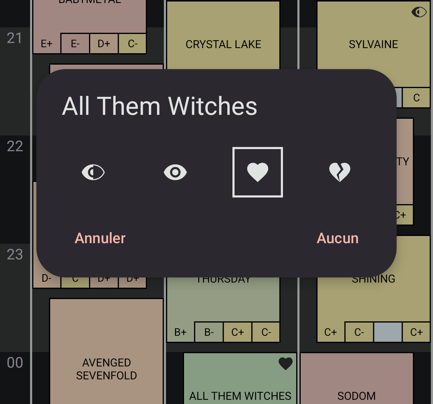 Pendant le festival, marquez les concerts vus, adorés... ou décevants.