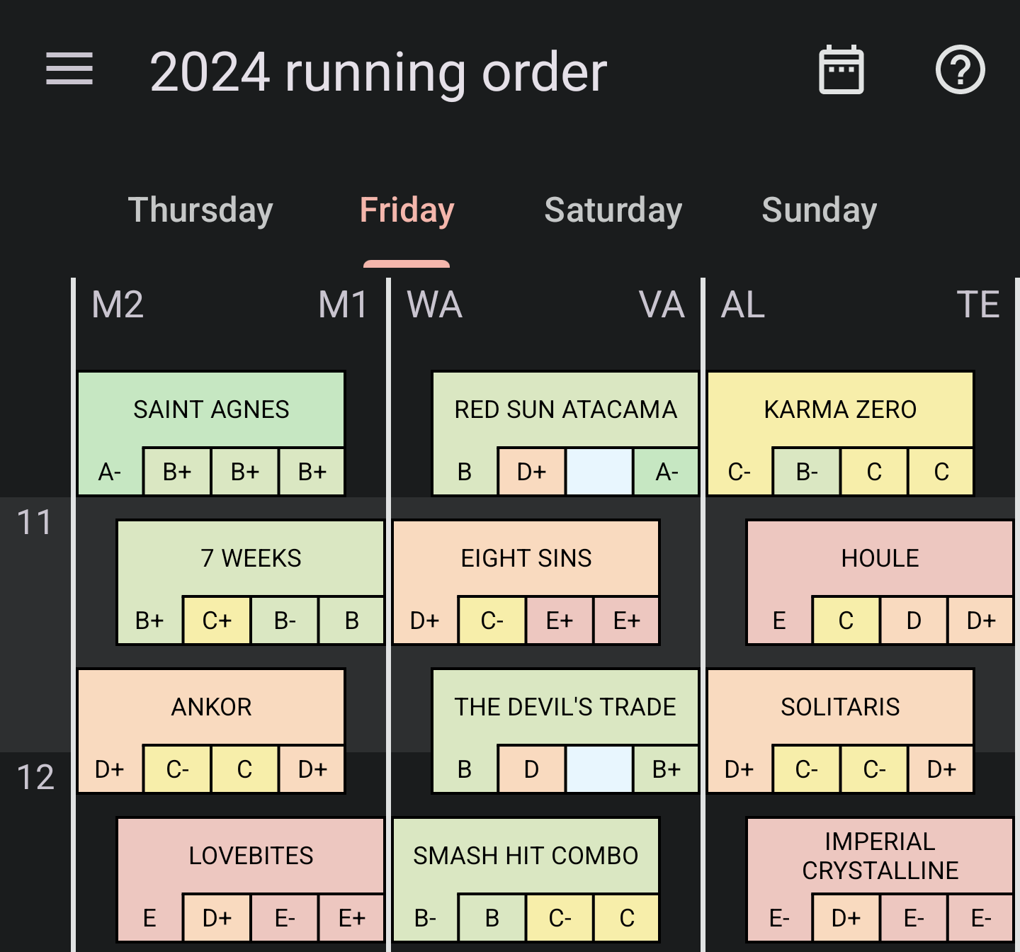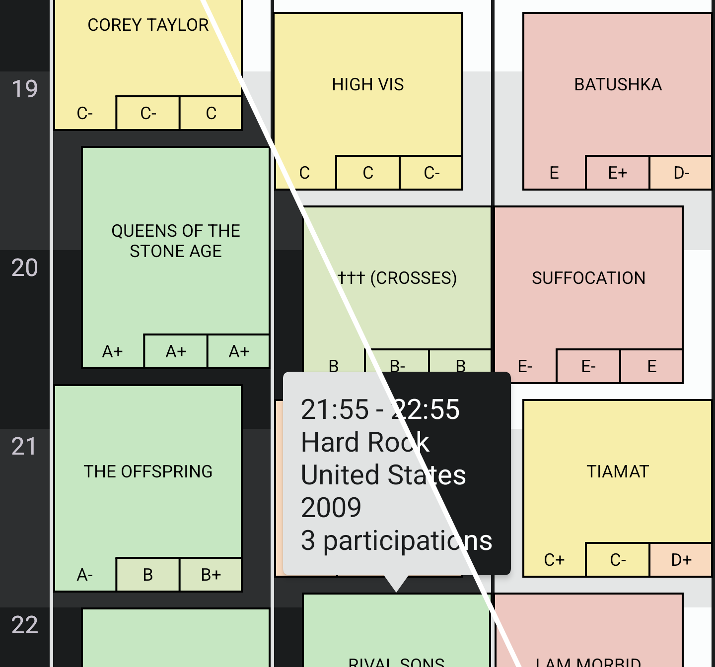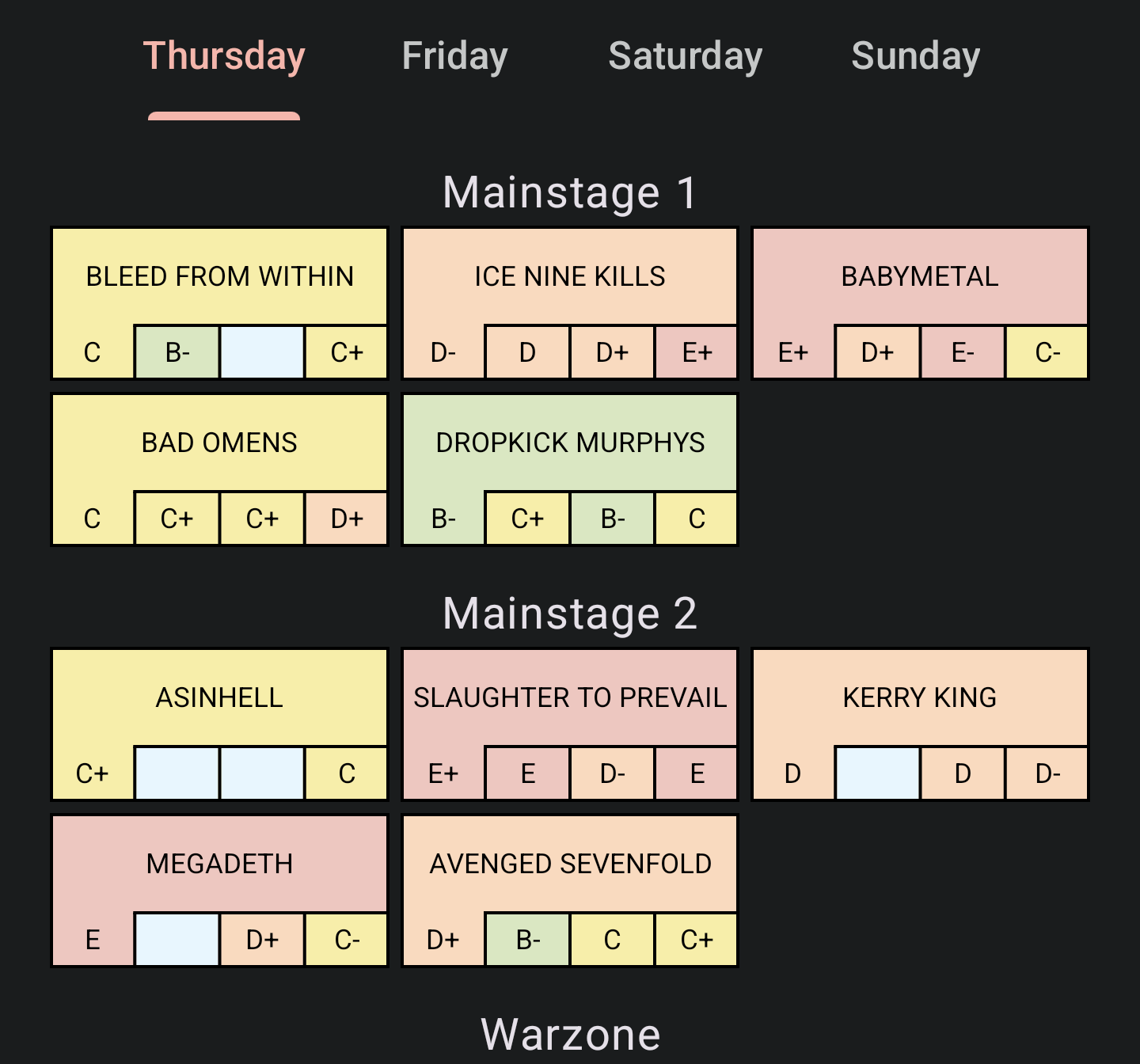 Rate the bands you want to see to get a custom running order, and share those ratings with the friends who'll be with you.